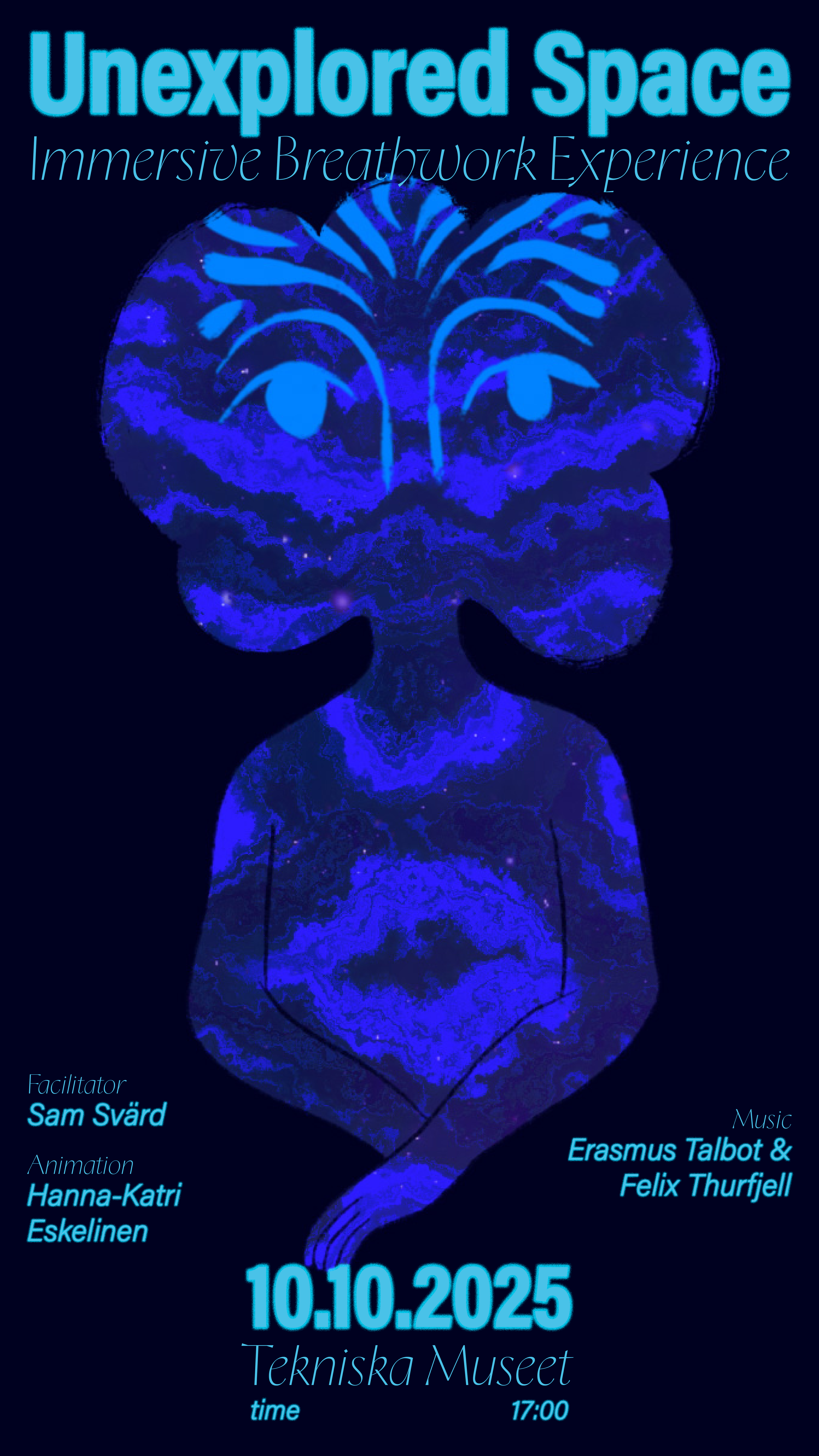 Poster for a performance of Unexplored Space at Tekniska Museet.